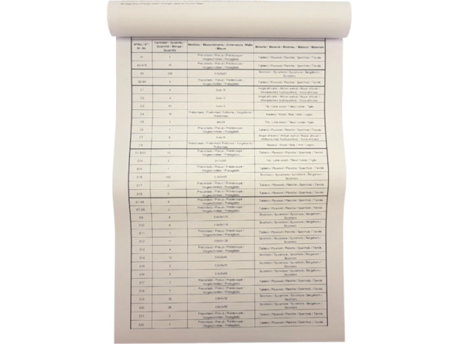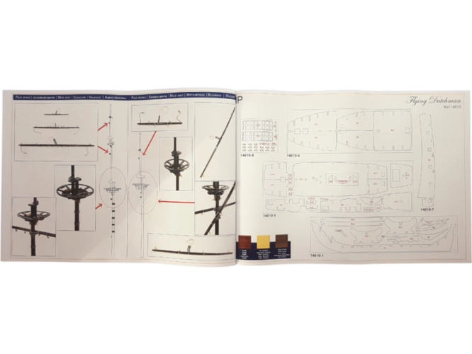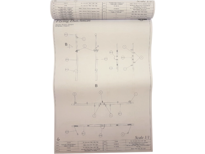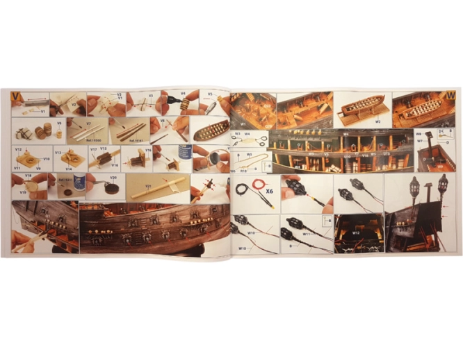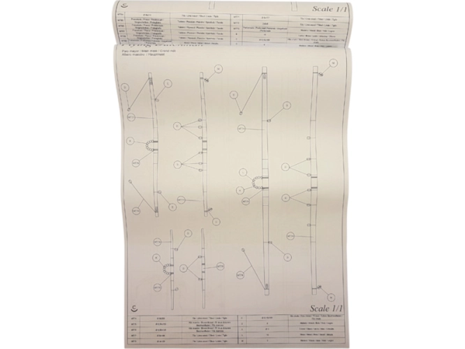 Set obsahuje kompletní sadu výkresové dokumentace modelu v měřítku s obrázky jednotlivých detailů. Na výkrese jsou nakresleny montážní sestavy, jejich kompletace a to včetně stěžňů a ráhen a způsob vázání lanoví. Vícejazyčný postup stavby rámcově upravuje logické sestavení jednotlivých komponentů.