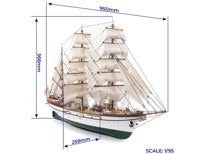 Stavebnice neplovoucího modelu lodi OCCRE Gorch Fock, v měřítku 1:95. V balení jsou díly pro stavbu + plachty - laserem řezané díly, lišty, mosazné fotolepy, lanoví a další. Stavební výkresy a návod.