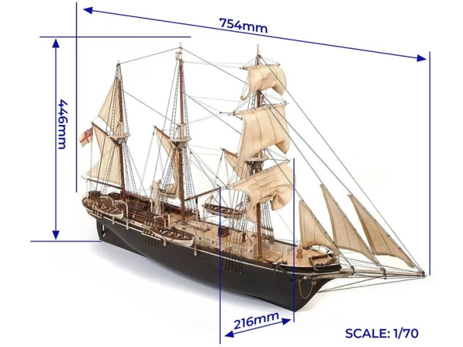 Stavebnice neplovoucího modelu lodi OCCRE HMS Endurance, v měřítku 1:70. V balení jsou díly pro stavbu + plachty - laserem řezané díly, lišty, mosazné fotolepy, lanoví a další. Stavební výkresy a návod.