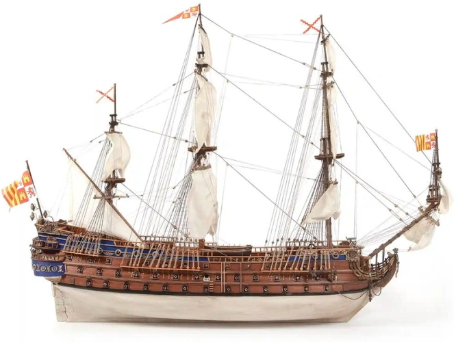 Stavebnice neplovoucího modelu lodi OCCRE San Felipe, v měřítku 1:86. V balení jsou díly pro stavbu + plachty - laserem řezané díly, lišty, mosazné fotolepy, lanoví a další. Stavební výkresy a návod.