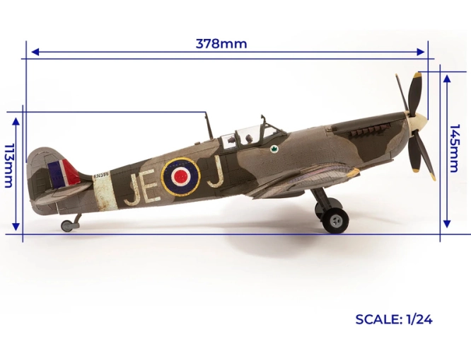 Stavebnice statického modelu letadla Supermarine Spitfire MK IXC EN398. Nejznámější spojenecká stíhačka z období 1942–1945, úzce spjatá s velitelem Jamesem Edgarem „Johnniem“ Johnsonem, jako autentický model z prémiových materiálů a s vysokou mírou detailů. S touto stavebnicí letadla Supermarine Spitfire v měřítku 1:24 si můžete přesně vytvořit skutečné letadlo z druhé světové války. Stavebnice je určena pro modeláře, kteří hledají historickou přesnost, konstrukční detaily a věrné ztvárnění jednoho z nejikoničtějších stíhacích letounů své doby.