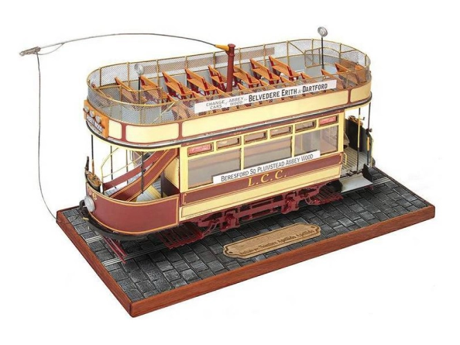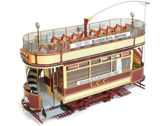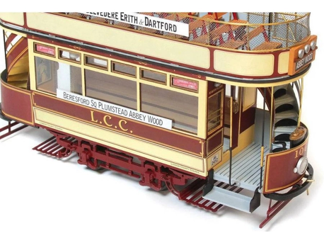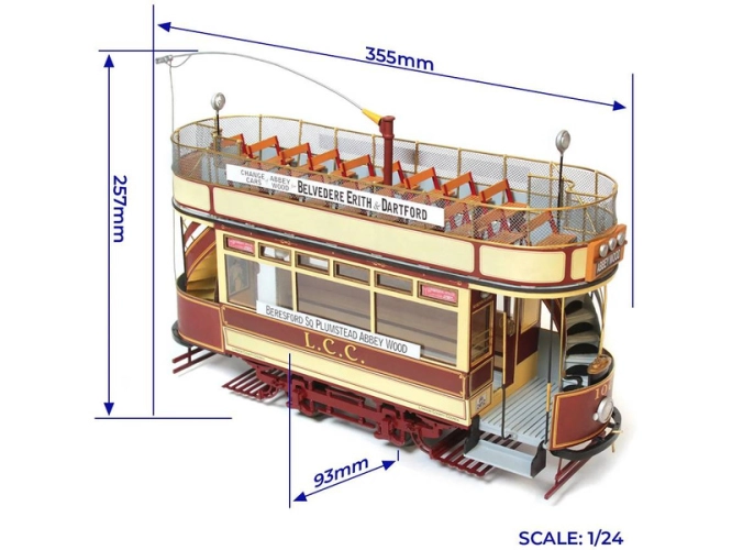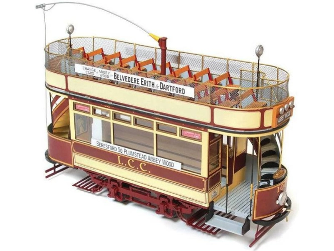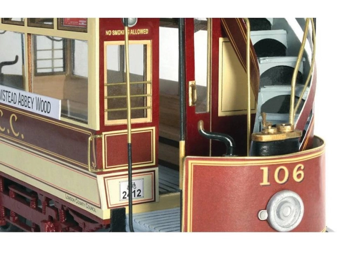 Stavebnice statického modelu tramvaje OCCRE Londýn, v měřítku 1:24. V balení jsou díly pro stavbu - laserem řezané díly, lišty, mosazné fotolepy a další. Stavební výkresy a návod.