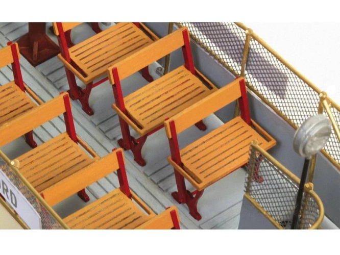 V balení jsou díly pro stavbu - laserem řezané díly, lišty, mosazné fotolepy a další.
