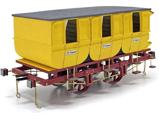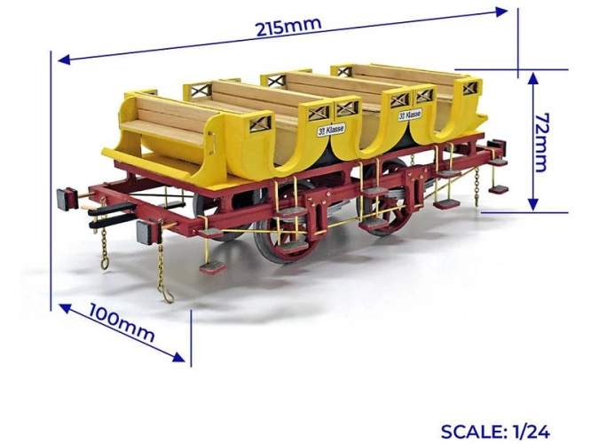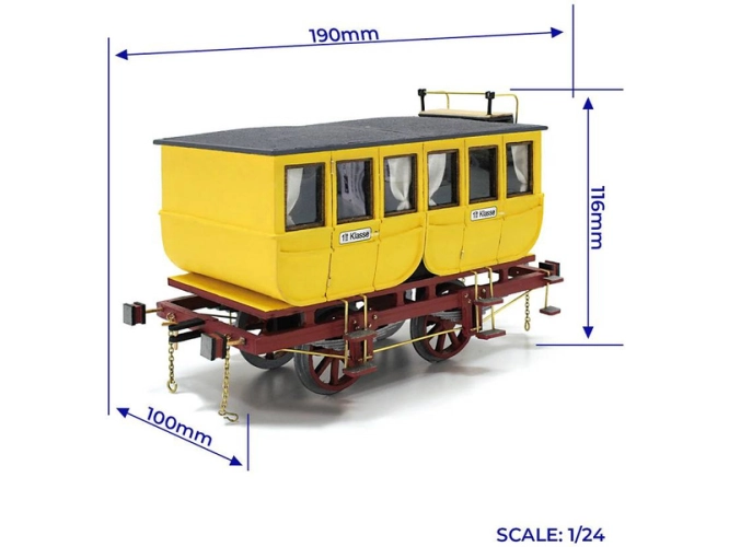 Stavebnice statického modelu vagónů OCCRE Adler, v měřítku 1:24. V balení jsou díly pro stavbu - laserem řezané díly, lišty, mosazné fotolepy a další. Stavební výkresy a návod.