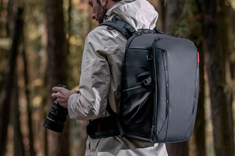Vysoce výkonný zádový panel se širokým a tlustým páskem nabízí větší pohodlí na cestách. Balení má horní a pravý boční přístup pro snadné uchopení objektivů s dlouhým ohniskem. Povrch potažený PU a pláštěnka jsou odolné proti stříkající vodě a chrání vaše vybavení před nečekaným počasím. Ramenní popruhy mají kapsu pro uložení telefonu a umožňují připojit volitelnou sponu na fotoaparát. Další uživatelsky orientované detaily včetně několika rukojetí a upevňovacích bodů, systému indikace baterie, zipů YKK a tajné kapsy AirTag maximalizují váš tvůrčí zážitek.