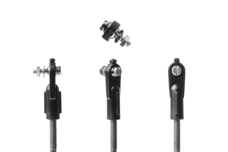 > Plastový kloubek M3 s mosaznou kuličkou a ocelovým táhlem, 1 ks.