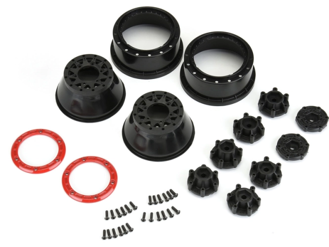 Disky Raid Bead-Loc SC Wheel jsou navrženy pro maximální všestrannost, snadné použití, výkon a off-road použití. Vyberte si svůj šestihranný unášecí offset ze 4 obsažených možností: Slash® přední, Slash® zadní/4x4 přední & zadní, Pro-Trac (0 offset) nebo 14mm pro auta ARRMA®. Disky rovněž akceptují jakýkoli z volitelných nebo tuningových hliníkových šestihranů Pro-Line 6x30, což vytváří spoustu možností přizpůsobení offsetu a rozměry šestihranu.