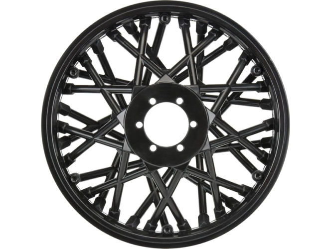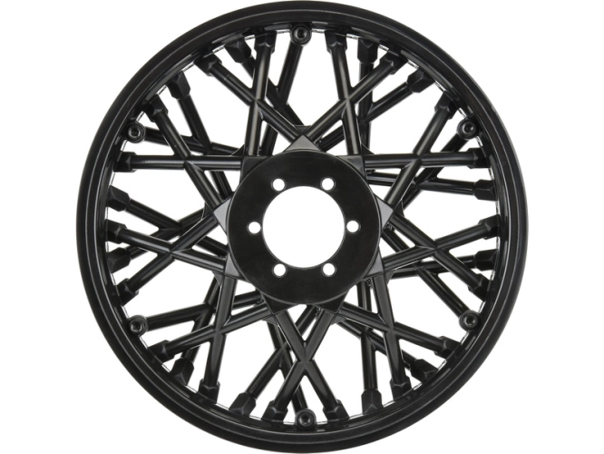 Disk zadního kola Bullyspoke má silnější paprsky než u standardní kola, aby se zabránilo ohýbání při tvrdých nárazech. Využívá styl V2 Bead společnosti Pro-Line, který má výhody jak ve snadném použití, tak v estetice. Díky širokému plochému 1/8 lepidlu ve stylu buggy je lepení pneumatik hračkou. Patky jsou směrovány ke středu ráfku kola. Namontujte si pneumatiky Pro-Line MX33 (PRO1023001) pro maximální vylepšení stylu a výkonu! Tato kola jsou lisována z vysoce kvalitního černého nylonu.
