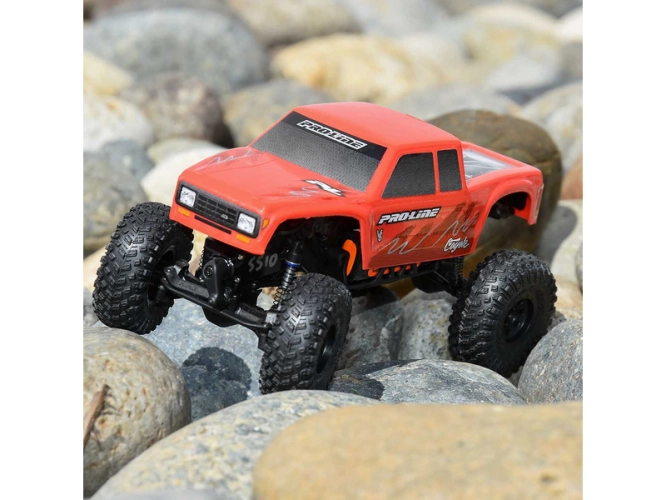 Karoserie je inspirovaná verzí pro modely SCX24 a zachovává všechny přednosti včetně zúžené přední a zadní části, což zajištuje maximální prostor pro pneumatiky a výbornou průchodnost terénem. Díky tomu se karoserie dokonale hodí i pro největší pneumatiky Pro-Line® pro SCX30™, bez nutnosti jakéhokoli úprav nebo ořezávání. Krátké převisy navíc poskytují vynikající nájezdový a výjezdový úhlel. Karoserie Coyote je vyrobena z lehčeného polykarbonátu, v jednom kuse, takže je odolná a přitom extrémně lehká.
