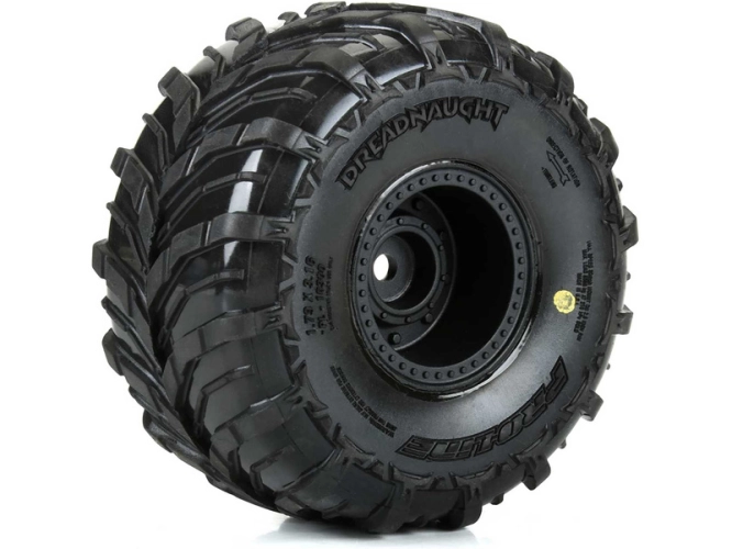 Kompletní kola Pro-Line pro RC modely aut 1:16 Typhon GROM Gorgon/Quake. Rozměr ⌀80x45 mm. Disk má černou barvu. Pneumatiky Dreadnaught Chevron s šípovým dezénem. Unašeč je šestihran 12mm. Vložka Open Cell.