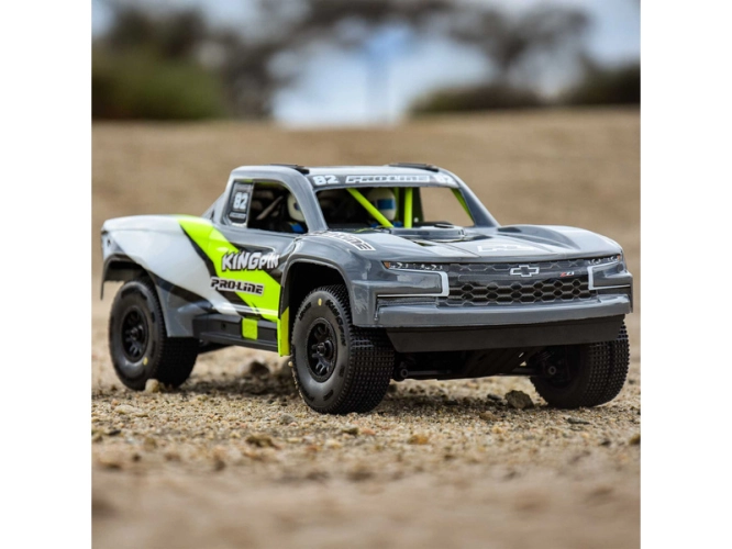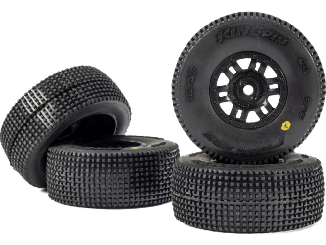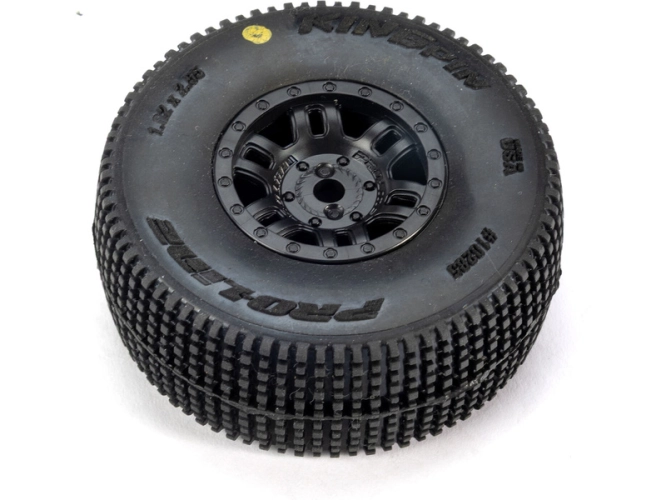 Pneumatiky jsou navrženy pro tvrdý, lehce prašný závodní povrch a poskytují konzistentní přilnavost, lepší ovladatelnost a jízdní vlastnosti inspirované závodním nasazením. Dezén King Pin je inspirovaný legendárními pneumatikami Hole Shot od Pro-Line. Díky tomu, že jsou již předem namontované, je instalace rychlá a bez starostí. Sada King Pin je první skutečně traťově zaměřenou volbou pneumatik pro řidiče MOJAVE GROM, kteří chtějí ze svého modelu dostat maximální výkon na závodní dráze.