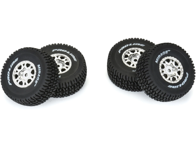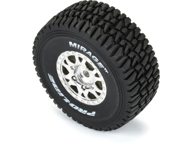 Kompletní kola Pro-Line pro RC modely aut 1:16 Mojave GROM. Rozměr ⌀68x28mm. Disk má stříbrnou barvu. Pneumatiky 1.2" Mirage TT, tvrdost směsi medium (střední). Unašeč je šestihran 12mm. Vložka Open Cell.