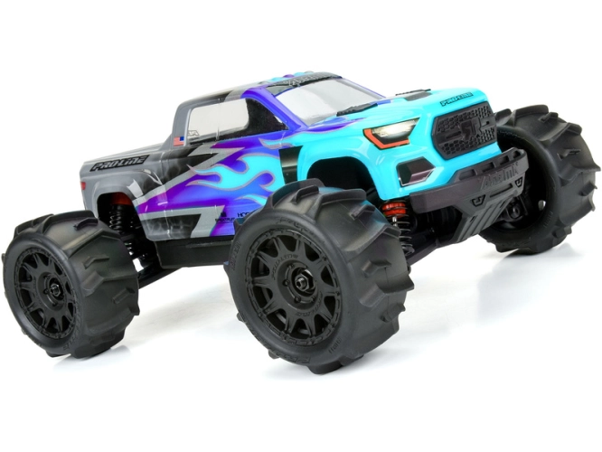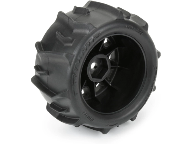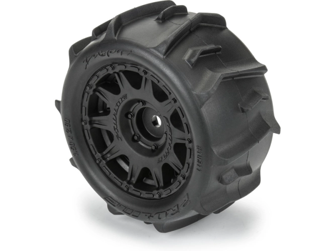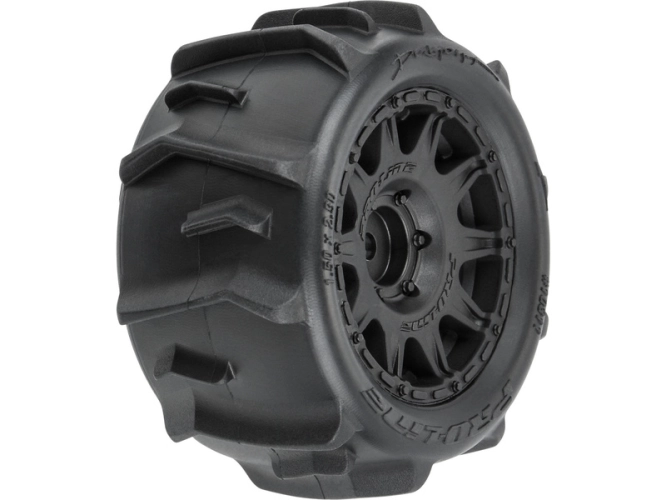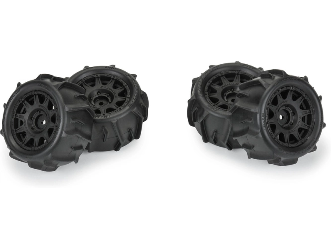Kompletní kola Pro-Line pro RC modely aut 1:18 Granite GROM. Rozměr ⌀74x38 mm. Disk Raid má černou barvu. Pádlové pneumatiky Dumont 1.9". Unašeč je šestihran 12mm. Vložka Open Cell.