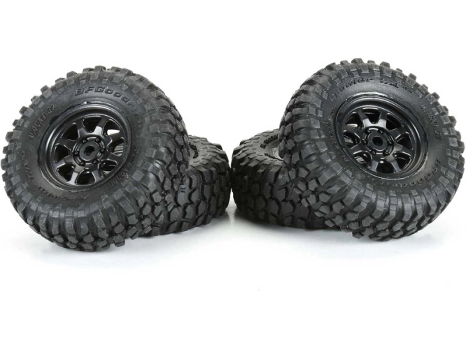 Kompletní kola Pro-Line pro RC modely aut Axial SCX30. Disk Icon Nuevo má černou barvu. Rozměr ⌀35x12 mm. Pneumatiky BFGoodrich® Krawler™ T/A® KX.