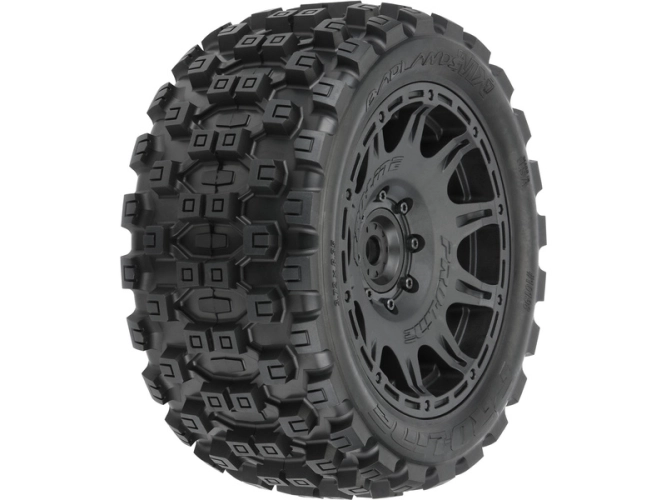 Pro-Line kolo kompletní přední/zadní 5.7", pneumatika Badlands MX57 a disk Raid H24 černý (2ks v balení). Náboj se šestihranem 24mm připevněn 8-mi šrouby. Pneumatiky s ultra odolnou směsí, která zabraňuje vyboulení pneumatiky při vysokých rychlostech. Ideální pro auta KRATON™ 8S a X-MAXX®.