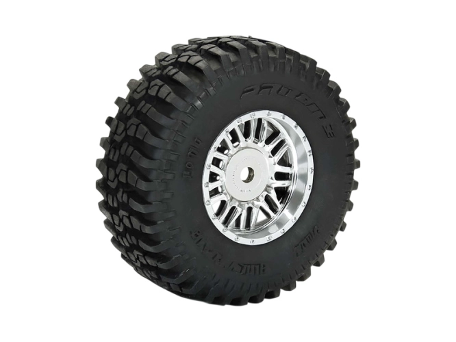 Kompletní kola Pro-Line pro RC modely aut 1:14 Typhon GROM 4WD. Rozměr ⌀70x27mm. Disk Diablo má chromovou (vnější) a černou (vnitřní) barvu. Pneumatiky Flat Iron. Unašeč je šestihran 12mm.