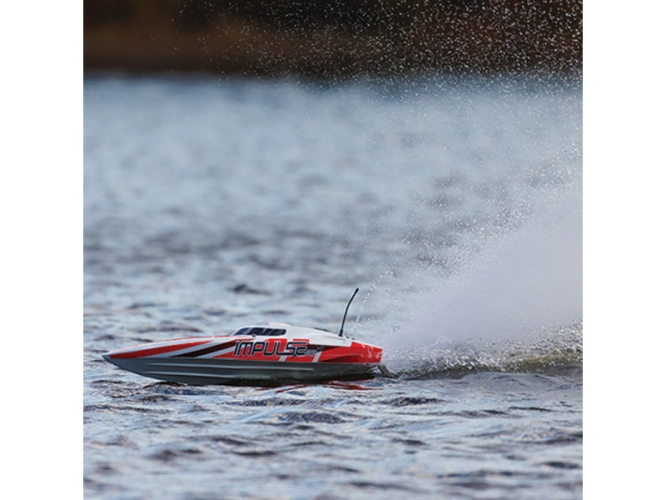 Rychlostní člun Impulse 32 s trupem typu Deep-V, představuje maximální výkon a kvalitu. Kombinuje soutěžní laminátový trup s výkonnou pohonnou jednotkou. Nebudete se moci nabažit extrémní rychlosti až 88km/hod. Vysoce výkonný vodou chlazený motor Spektrum™ 1900 KV spolu s vodou chlazeným regulátorem Smart Spektrum Firma™ 160A je schopen dát výkon až 3HP a dosáhne rychlost až 88km/hod! Díky Deep-V závodně koncipovanému laminátovému trupu je perfektně přilepen k vodě. Nastavitelné trimovací kormidla stabilizují loď při neuvěřitelně vysokých rychlostech. A to všechno při zachování přesného ovládání i za těch nejtvrdších podmínek na vodě.