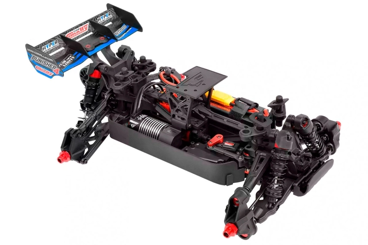 Základem modelu Punisher4 je robustní 4pólový střídavý motor Kuron 725 s výkonem 2150 kV, který je spojen s elektronickým regulátorem otáček Torox 135. Toto výkonné duo poskytuje vynikající výkon a využívá 4S LiPo akumulátoru k dosažení rychlosti přes 80 km/h. Digitální vysokorychlostní servo HV7225 s odolnými kovovými převody a točivým momentem 25 kg zajišťuje přesné a citlivé řízení.