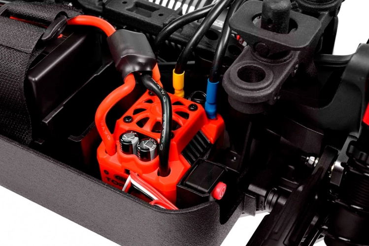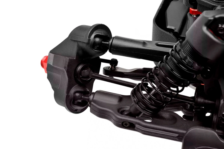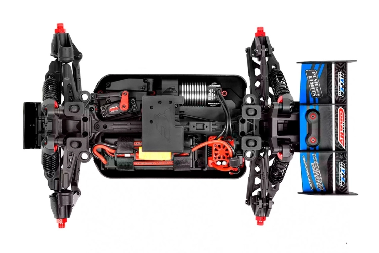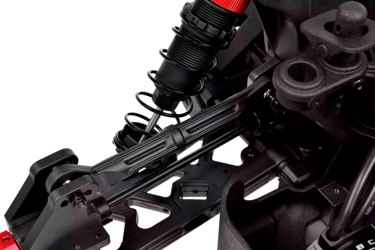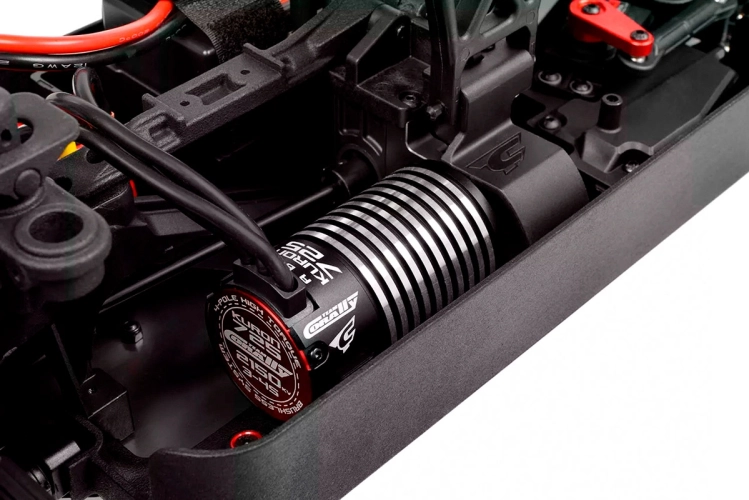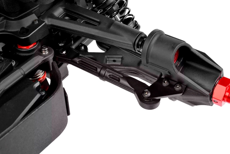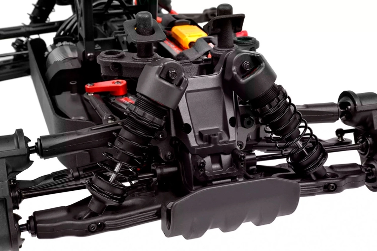 Jeho hybridní hliníkový držák motoru nabízí tři polohy motoru pro přesné nastavení vůle pastorku. Zesílené hnací ústrojí s ocelovými unašeči a robustním hlavním převodovým převodem 52T zajišťuje dlouhou životnost. Široké těhlice z Kagamy a Sketeru dodávají stabilitu a schopnosti v terénu, zatímco nové wheelie kolečko pomáhá zvládat obrovský výkon. Od střídavého motoru Kuron 725 až po regulátor Torox 135 - každá součástka přispívá ke vzrušující maximální rychlosti přes 80 km/h. Vysílač CT2S 2,4 GHz, systém vyztužení podvozku a křídlo s vysokou přítlačnou silou doplňují balíček, takže Punisher4 je skutečným důkazem odkazu inovací a výkonu firmy Team Corally.