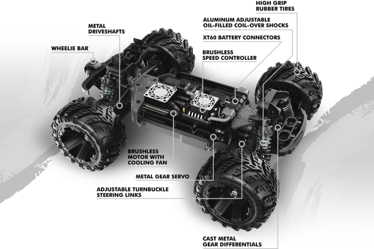 Tento monster truck v měřítku 1:16 je určen pro řidiče, kteří touží po velkém výkonu v kompaktním balení, které s sebou zabalíte kamkoli. Ať už teprve objevujete vzrušení z RC bashingu, nebo jste zkušený lovec adrenalinu hledající seriózní výkon, QBit je navržen právě pro vás.