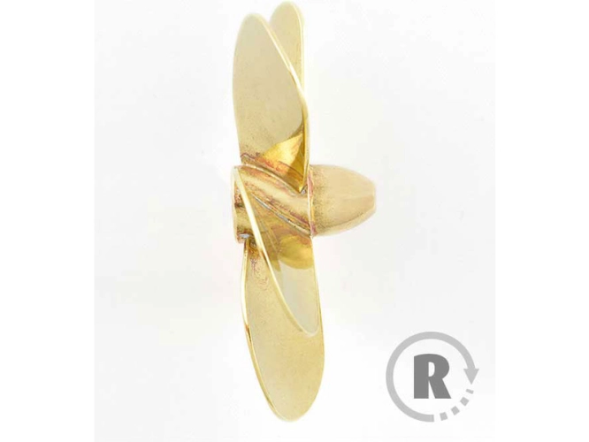 Raboesch lodní šroub tř.148, 130mm, M5, 5-listý pravý. Montáž na hřídel se závitem M5. Průměr 130mm, materiál mosaz pájená stříbrem.