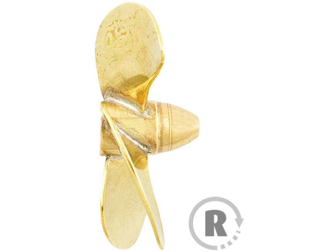 Raboesch lodní šroub tř.170 4-listý, průměr 35mm, směr otáčení pravý, montáž na hřídel se závitem M3, materiál mosaz pájená stříbrem.