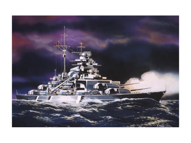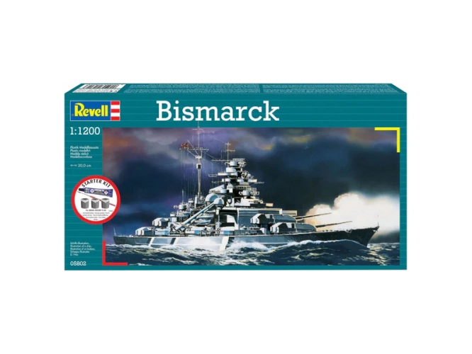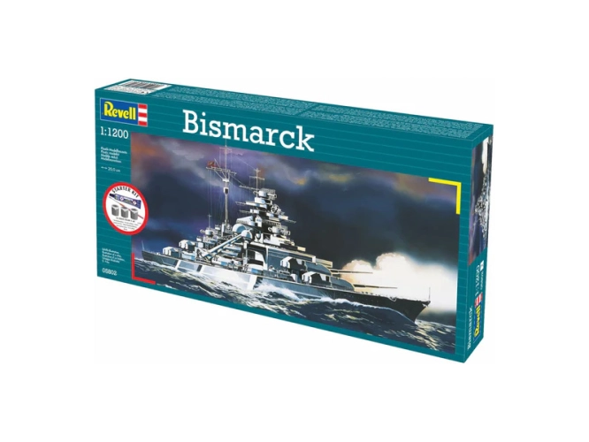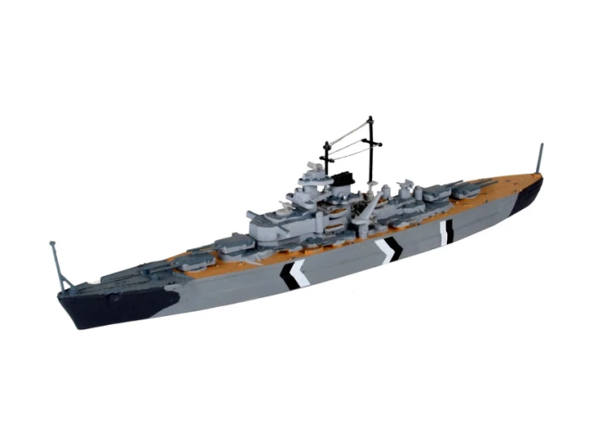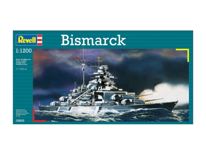 Plastikový model Revell 75802 – loď Bismarck v měřítku 1:1200 ke slepení. Stavebnice obsahuje 31 dílků, délka 20.0 cm, obtížnost 4.