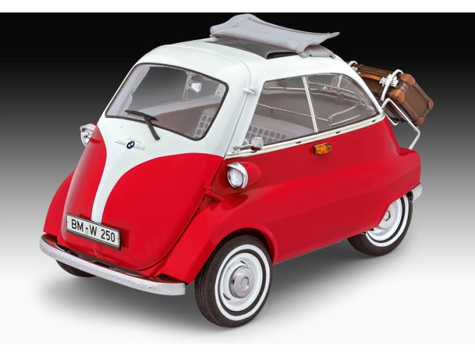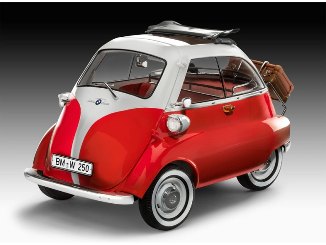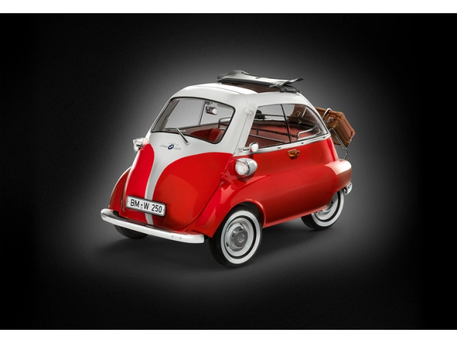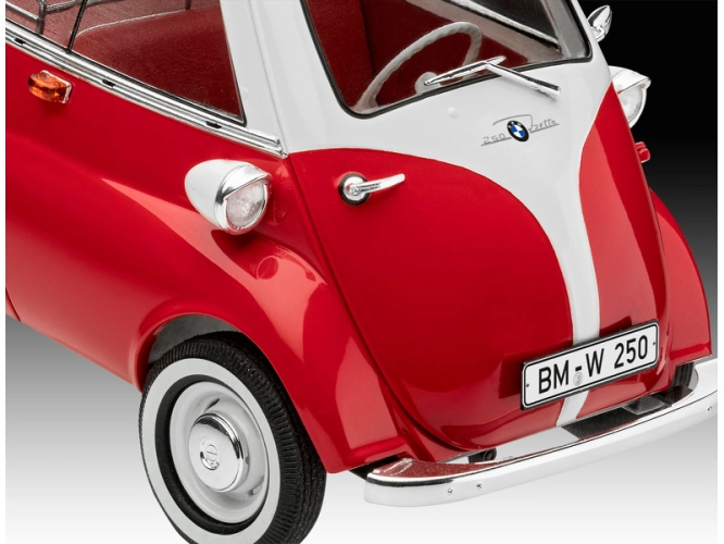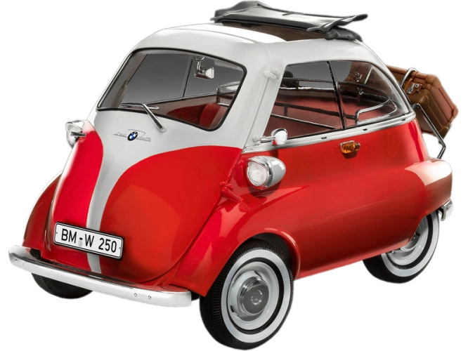 Plastikový model Revell 07735 - auto BMW Isetta 250 (70th Anniversary) v měřítku 1:16. Stavebnice obsahuje 94 dílků, lepidlo, štětec, bavičky, délka 154 mm, obtížnost 3.