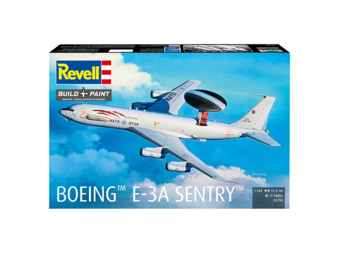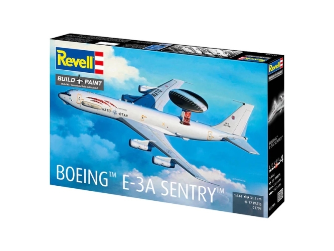 Plastikový model Revell 03794 - letadlo Boeing E-3A v měřítku 1:144 ke slepení. Stavebnice obsahuje 77 dílků, obtížnost 4.