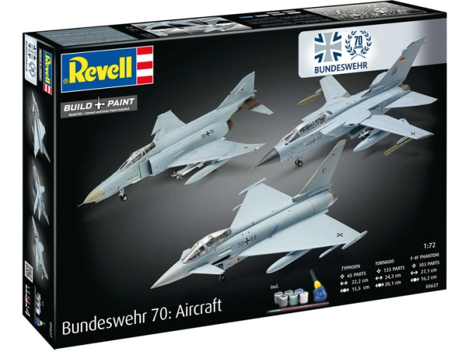 Set plastikových modelů Revell 05627 - letadla 70. let Bundeswehr v měřítku 1:72 ke slepení. Stavebnice obsahuje 301 dílků, obtížnost 5.