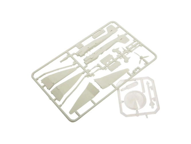 Plastikový model ke slepení, lepidlo, štětec, základní barvy, návod, obtisky.
