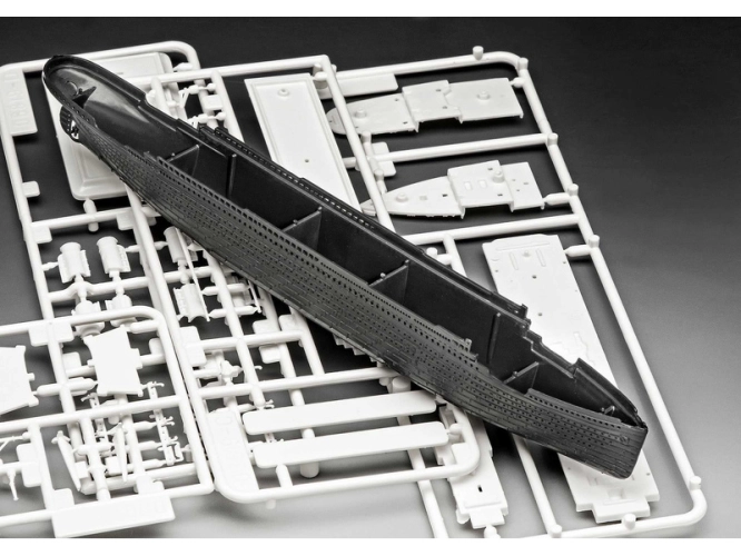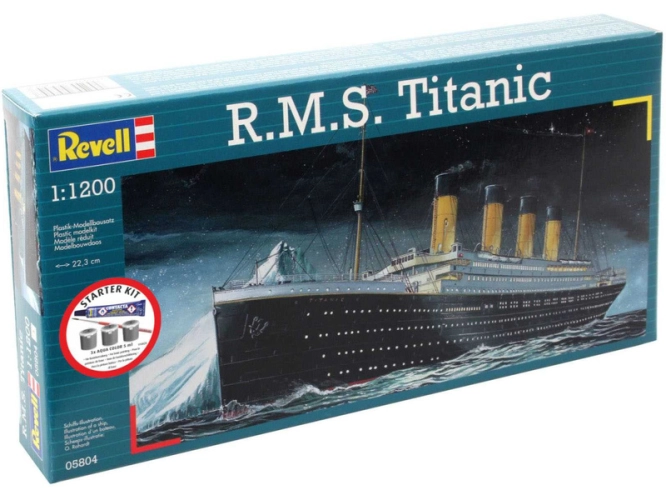 Plastikový model Revell 75804 – loď R.M.S. Titanic v měřítku 1:1200 ke slepení. Stavebnice obsahuje 40 dílků, délka 223 mm, obtížnost 3.