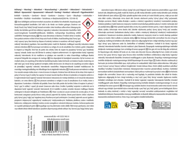 Plastikový model ke slepení, lepidlo, štětec, základní barvy, návod, obtisky.