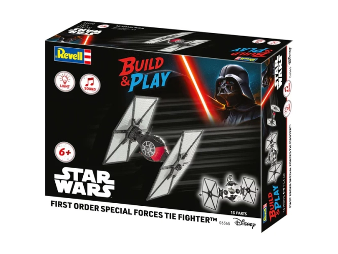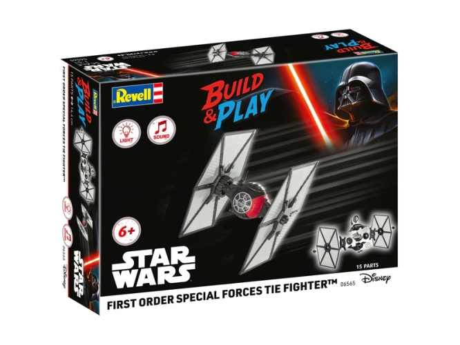 Plastikový model Revell 06565 – Star Wars First Order Special Forces TIE Fighter v měřítku 1:51 ke slepení. Stavebnice obsahuje 15 dílků, obtížnost 1.