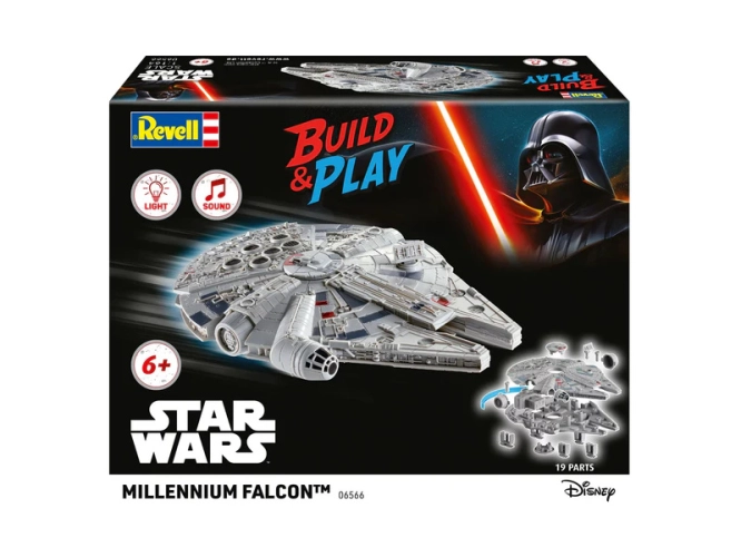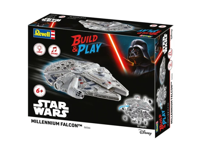 Plastikový model Revell 06566 – Star Wars Millennium Falcon v měřítku 1:164 ke slepení. Stavebnice obsahuje 19 dílků, obtížnost 1.