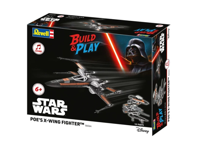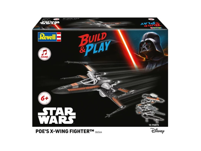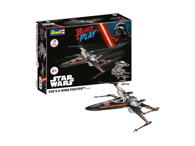 Plastikový model Revell 06564 – Star Wars Poe's X-Wing Fighter v měřítku 1:78 ke slepení. Stavebnice obsahuje 18 dílků, obtížnost 1.