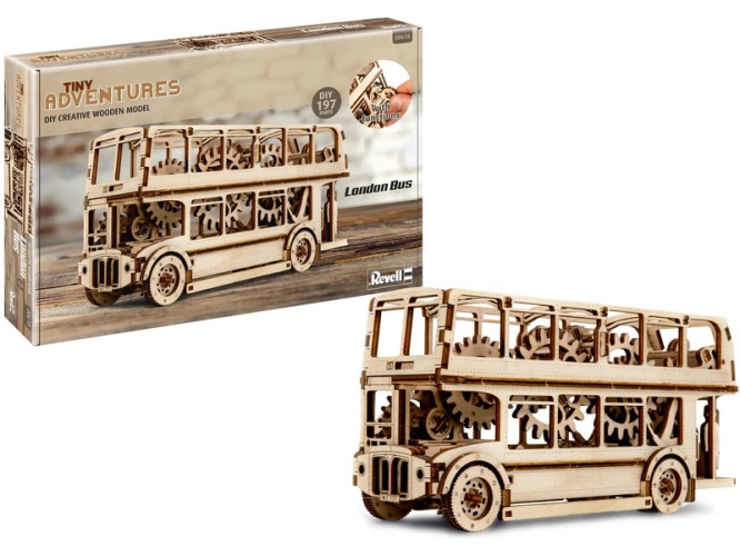 Dřevěný model Revell 00618 - Tiny Adventures - London Bus k sestavení. Stavebnice obsahuje 216 dílků.