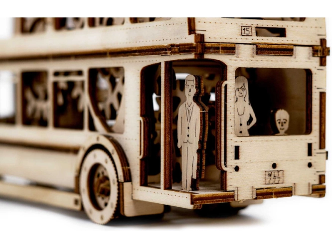 Model London Bus je propracovaný k dokonalosti. Jeho interiér obsahuje pečlivě navržený motor, startovací klíč, startovací páku a tlumiče. Přiložené figurky oživují toto mechanické mistrovské dílo a zajišťují autentické a přitažlivé zobrazení. Naše laserem vyřezávané dřevěné modely kombinují nejvyšší přesnost s jednoduchou montáží, která je prostě radost. Díky chytrým funkcím, které oživují dřevěné modely, nabízejí fascinující zážitek.