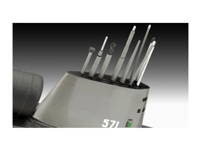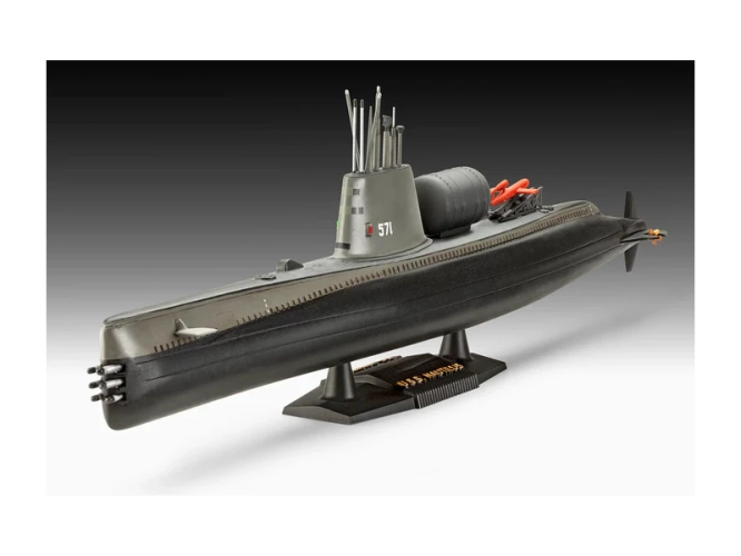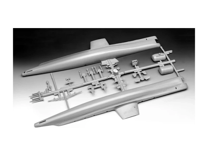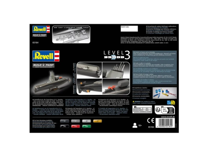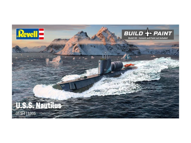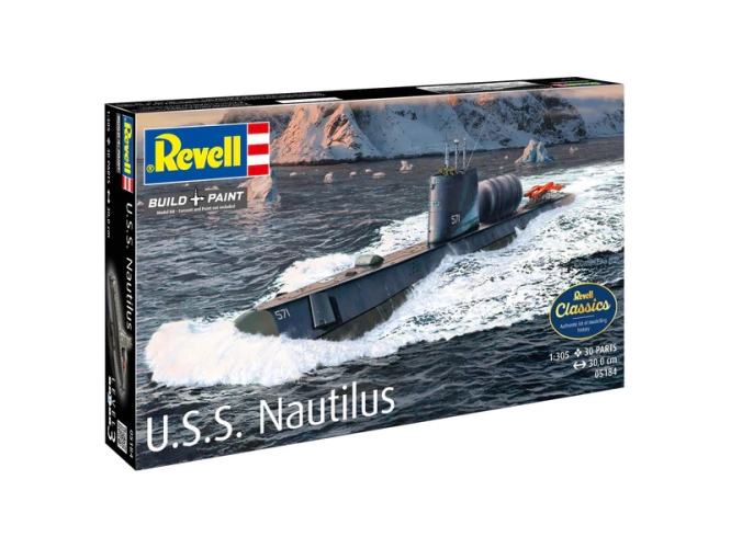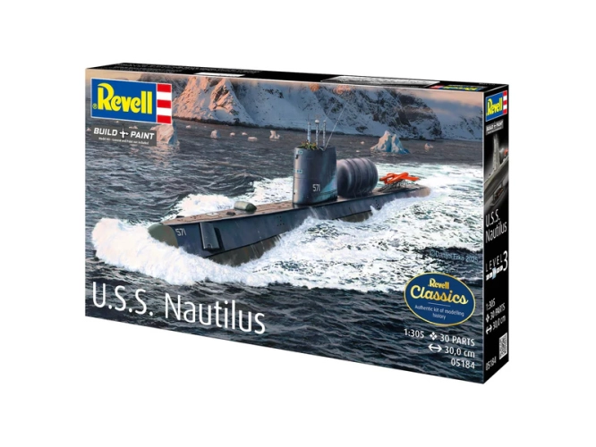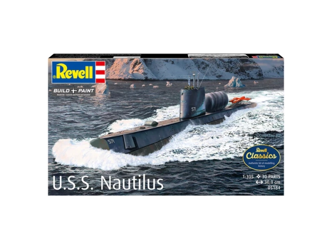 Plastikový model Revell 05184 – ponorka U.S.S. Nautilus v měřítku 1:305 ke slepení. Stavebnice obsahuje 30 dílků, délka 300 mm, obtížnost 3.