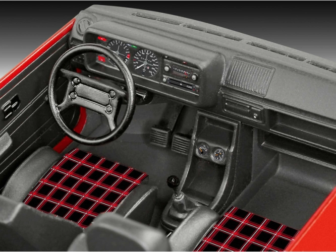 Revell plastikový model auta Volswagen Golf 1 GTi (50th Anniversary) v měřítku 1:24 ke slepení. Stavebnice obsahuje 121 dílků, délka 15,4 cm, obtížnost 4.