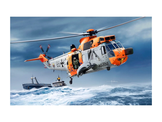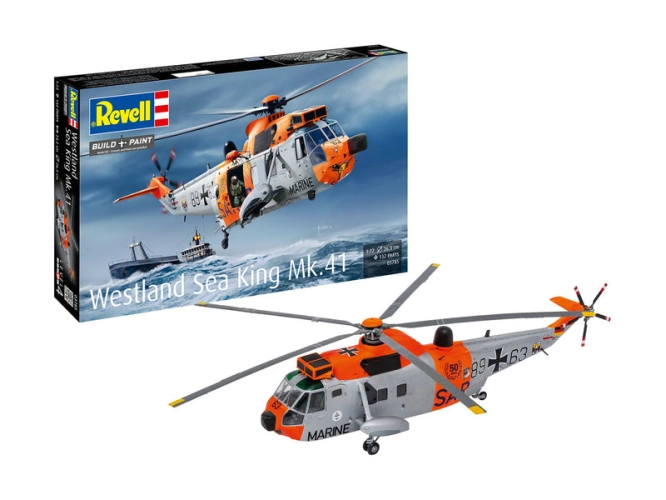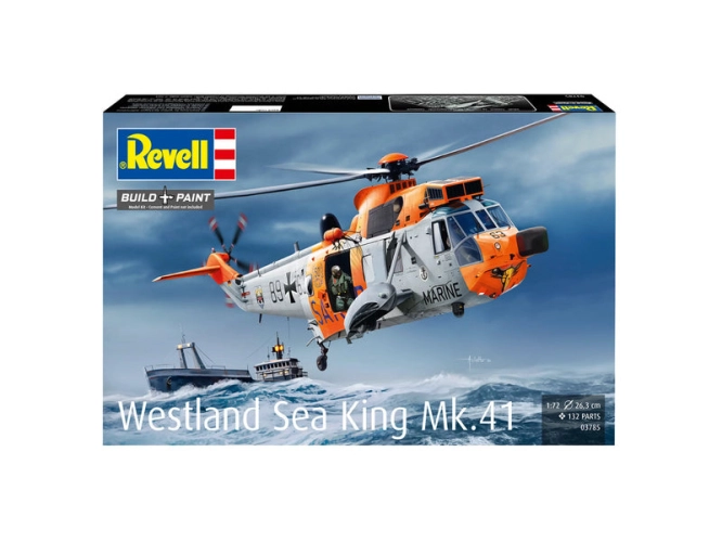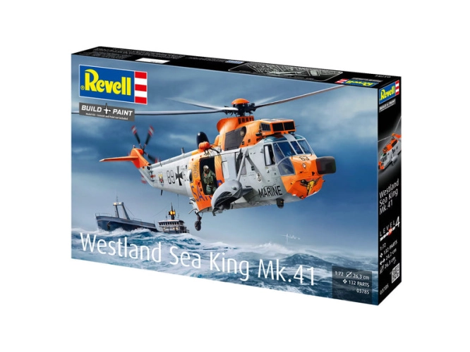Plastikový model Revell 03785 – vrtulník Westland Sea King Mk. 41 v měřítku 1:72 ke slepení. Stavebnice obsahuje 132 dílků, délka 26,3mm, obtížnost 4.