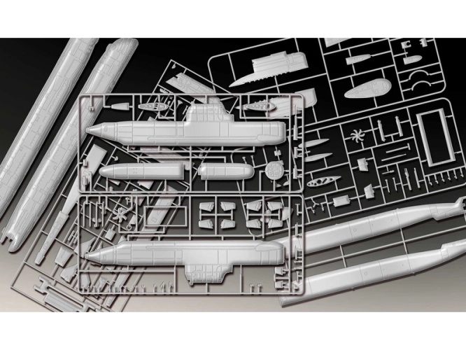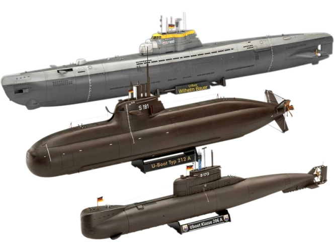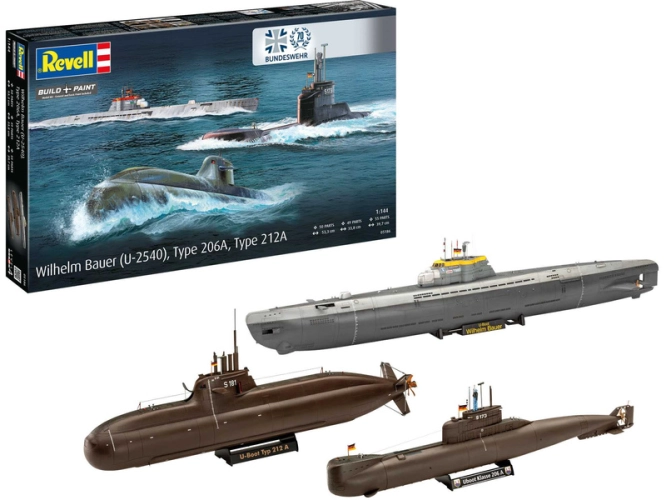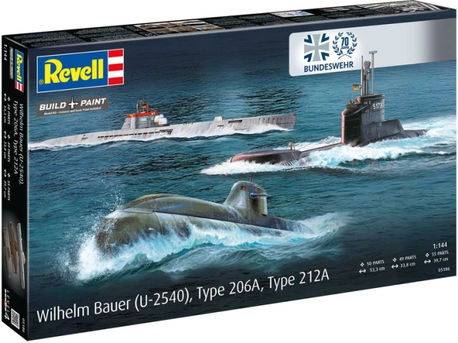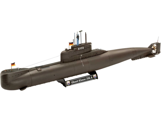 Plastikový model Revell 05186 - ponorky Wilhelm Bauer, Type 206A, Class2 (70 Years Bundeswehr) v měřítku 1:144 ke slepení. Stavebnice obsahuje 154 dílků, obtížnost 4.