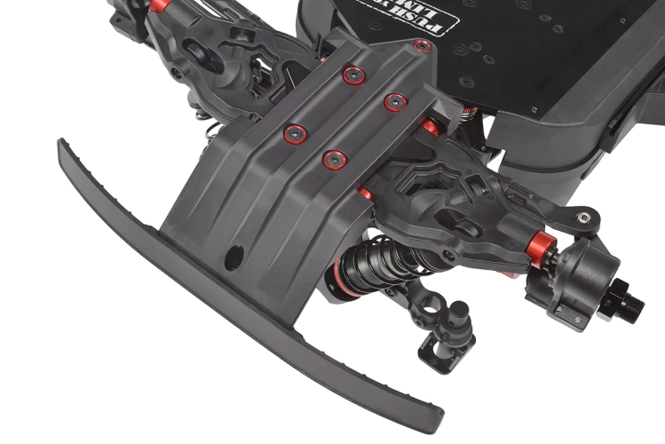 Jádrem modelu SHIROI je CNC frézované 3mm hliníkové plato podvozku, vyztužené vzpěrami a vysokými kompozitními bočními chrániči. Tato tuhá kostra je konstruována tak, aby s lehkostí zvládala jízdu ve vysoké rychlosti, drsný terén a náročné dopady. Neprůstřelné ocelové hnací ústrojí s CNC frézovanými ozubenými koly, třemi diferenciály naplněnými olejem a odolnými hnacími hřídeli CVD zajišťuje maximální účinnost a spolehlivost jak při napájení 4S, tak i 6S LiPo.