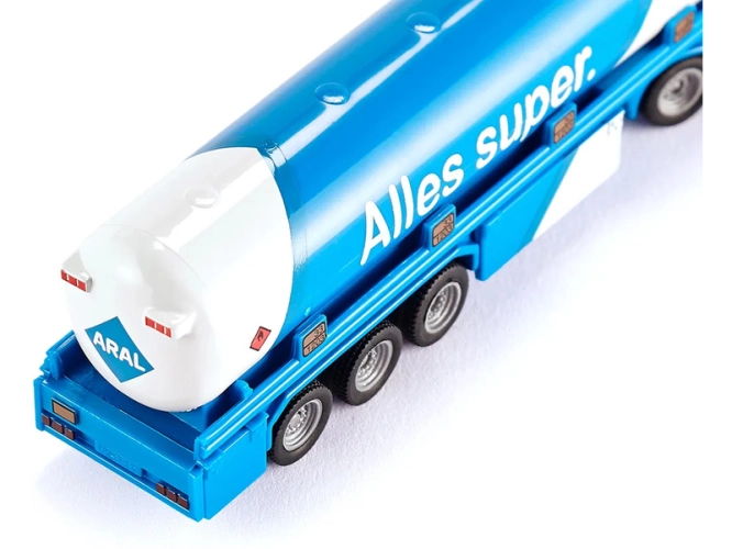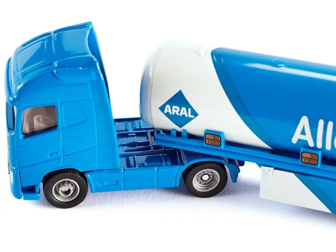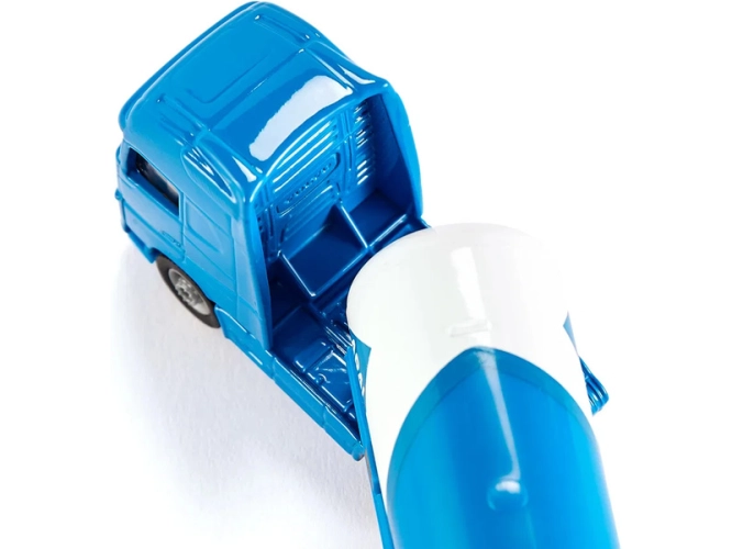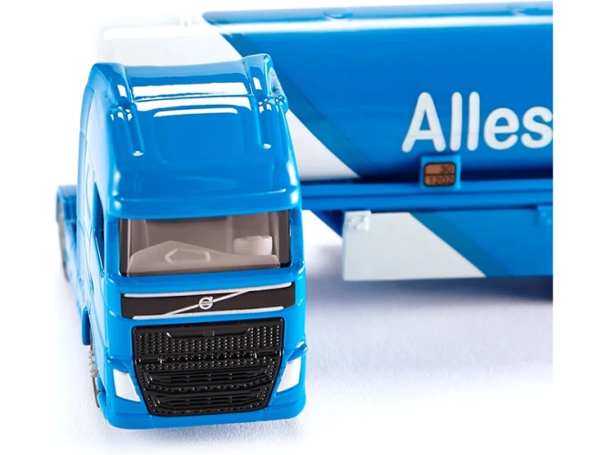 Kovový model tahače s cisternovým návěsem od značky Siku, délka přibližně 17 cm, měřítko 1:87. Tahač je vybaven gumovými pneumatikami a čirými okny. Návěs je odpojitelný a má výklopné patky pro samostatné stání. Vhodné pro hraní i sběratelství. Kvalitní zpracování z kovu a plastu. Baleno v blistru.