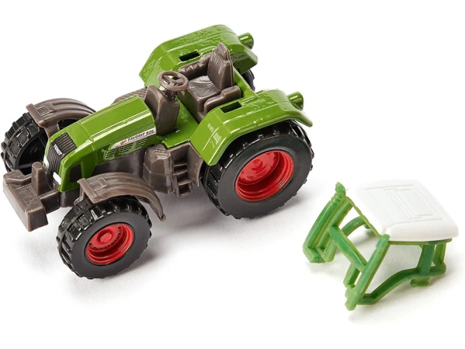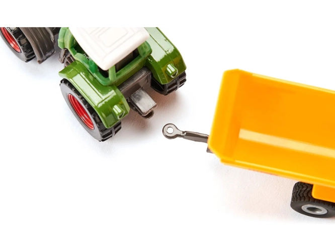 Kovový model traktoru Fendt s přívěsem Krampe, délka přibližně 16 cm. Traktor je vybaven tažným zařízením a odnímatelnou střechou. Dvounápravový přívěs je odpojitelný, má vyklápěcí krobu a otevírací zadní čelo. Vhodné pro hraní i sběratelství. Kvalitní zpracování z kovu a plastu. Baleno v blistru.