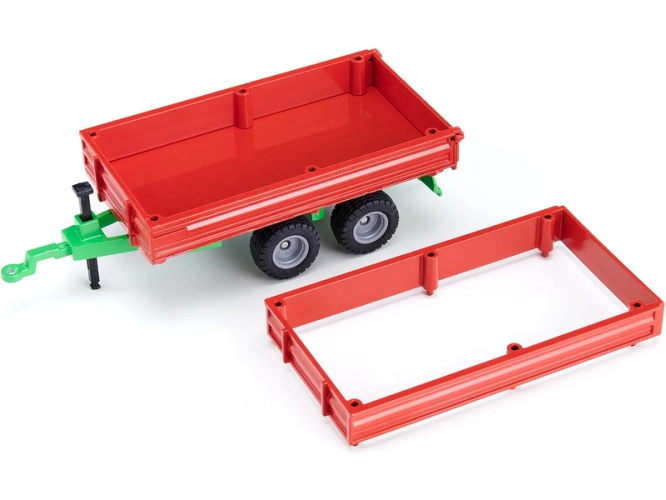 Kovový model přívěsu v měřítku 1:32. Korbu přívěsu lze zvednout pro vysypání nákladu, zadní dveře jsou výklopné, obsažena je výsuvná stojka, kola jsou gumová, bočnice lze snížit. Určeno pro zapojení k modelů Siku Farmer 1:32 s tažným zařízením. Vhodné pro hraní i sběratelství. Kvalitní zpracování z kovu a plastu.