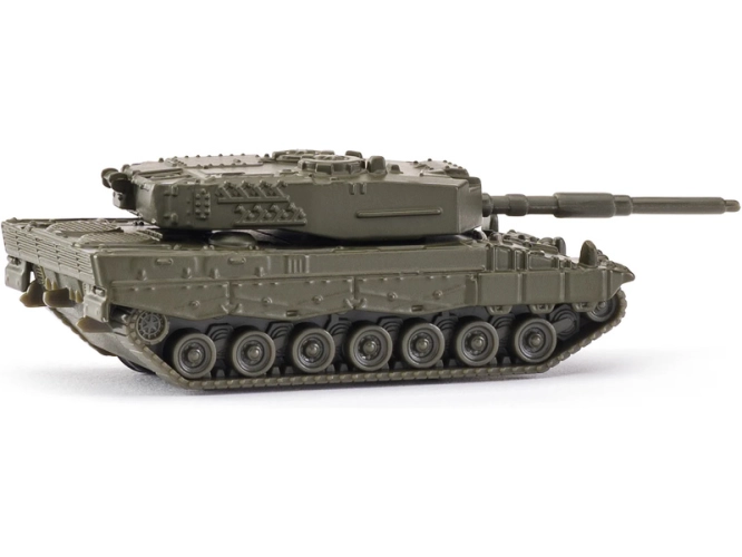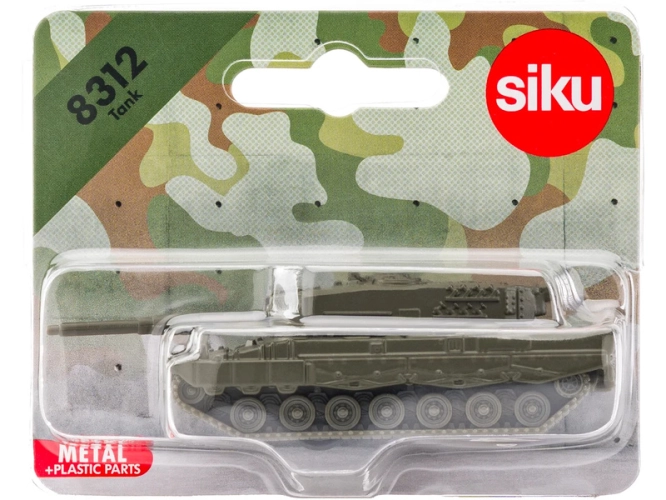 Kovový model tanku od značky Siku. Bojový tank má pohyblivou dělovou věž. Pásy jsou pevné (na spodní straně modelu jsou kolečka). Vhodné pro hraní i sběratelství. Kvalitní zpracování z kovu a plastu. Baleno v blistru.