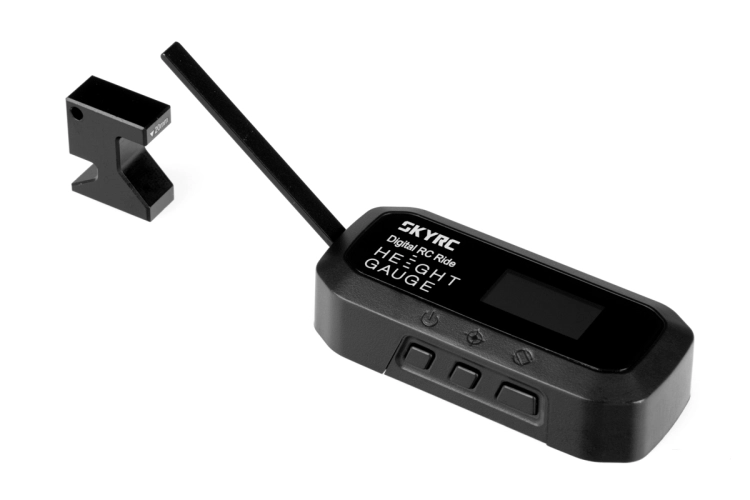 Digitální měřič světlé výšky je určen pro přesné a reprodukovatelné měření světlé výšky podvozků RC aut. Vyhovuje pro celou řadu měřítek RC aut od 1:24 po 1:8; poskytuje digitální údaj pro usnadnění nastavování podvozku, tlumičů a předstartovní přípravu.