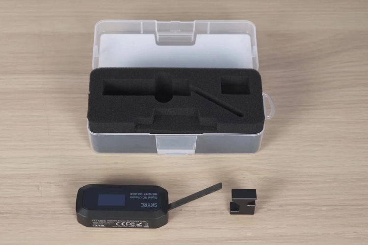 Sada měřiče obsahuje: měřič světlé výšky RT005, kalibrační blok, 1x AAA baterie, krabička s pěnovou vložkou, návod.