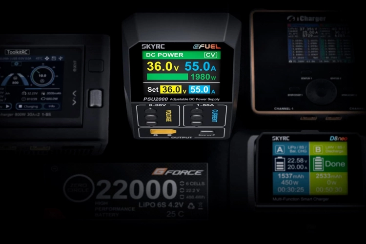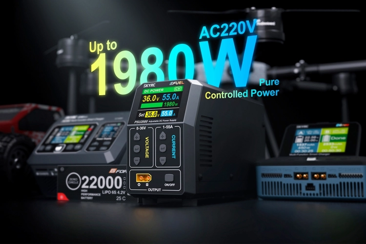 Vysokovýkonný – a přitom lehký, kompaktní, v odolném hliníkovém pouzdře – stabilizovaný síťový zdroj PSU2000 je ideální pro napájení modelářských nabíječů a dalších zařízení. Nabízí nastavitelné výstupní napětí 8-36 V a proud 1-55 A s výkonem až 2000 W.